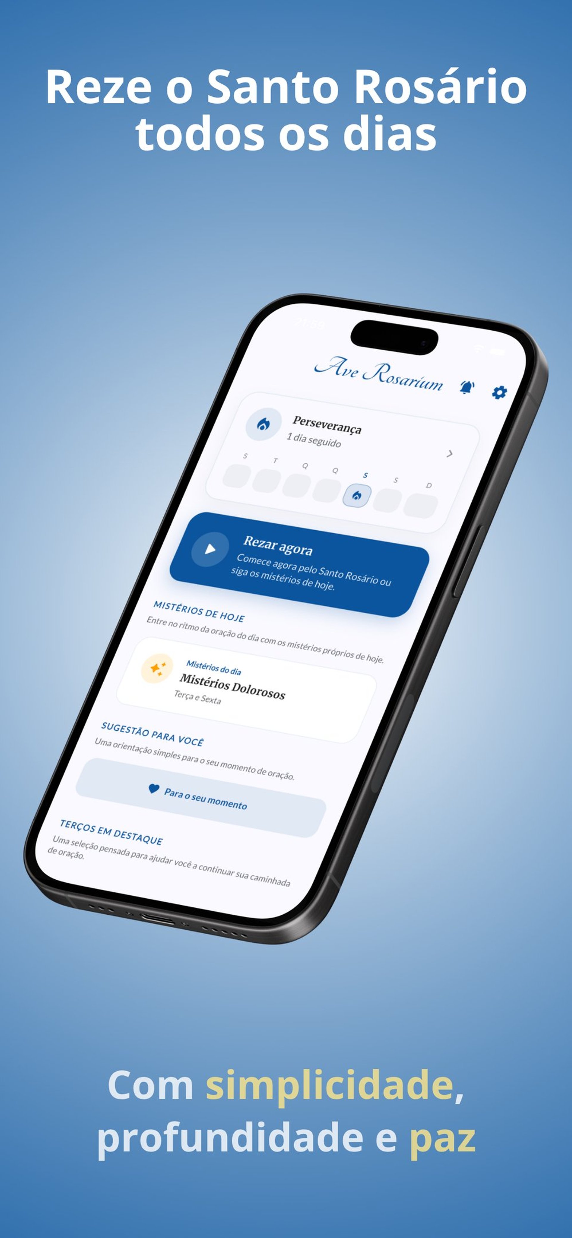 Um aplicativo simples, offline e acessível para fortalecer sua vida espiritual.